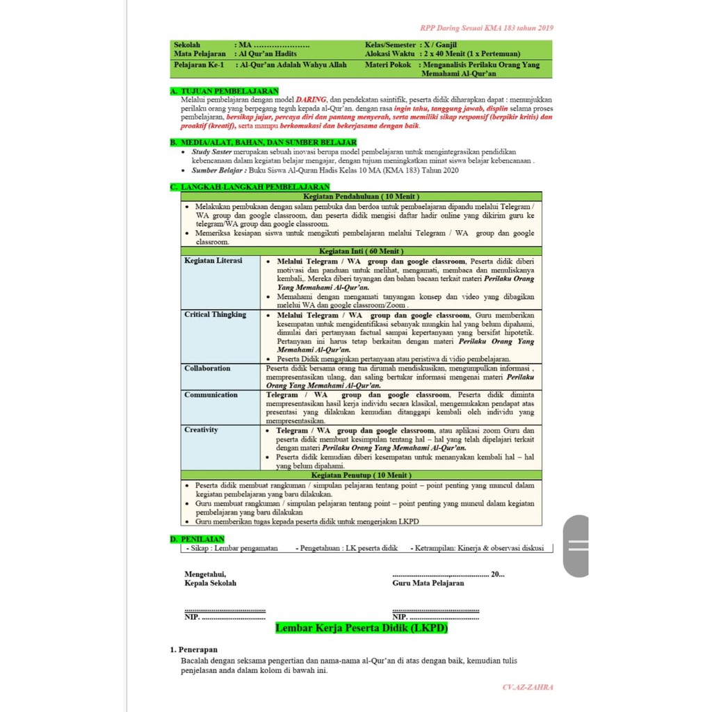 Ki Kd Qurdis Kma 183 - Program Tahunan Quran Hadits Ma - Berdasarkan kma no 183 tahun 2019.